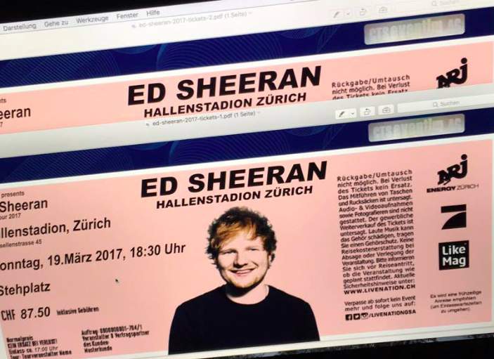 Online Gekaufte Ed Sheeran Tickets Fur Das Konzert In Zurich Echt Ticket Fake